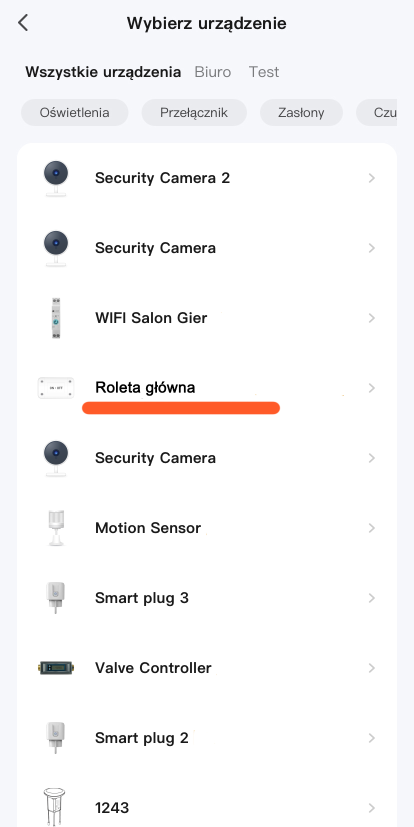 Tutaj musimy przejść do głównego sterownika - w tym przypadku pod nazwą Roleta główna,