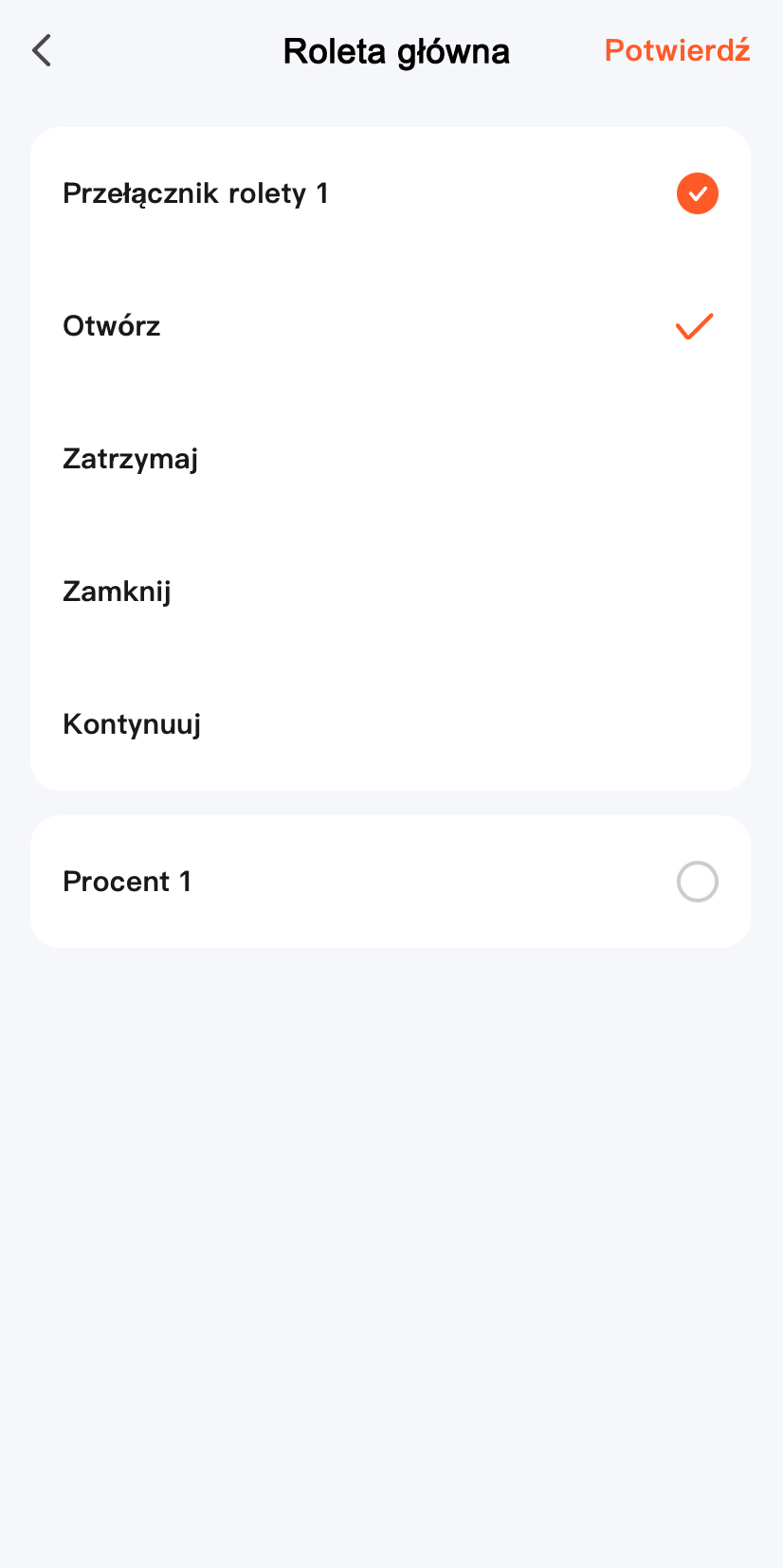 Jeśli chcemy by nasze rolety otworzyły się jednocześnie wybieramy opcję - Otwórz,