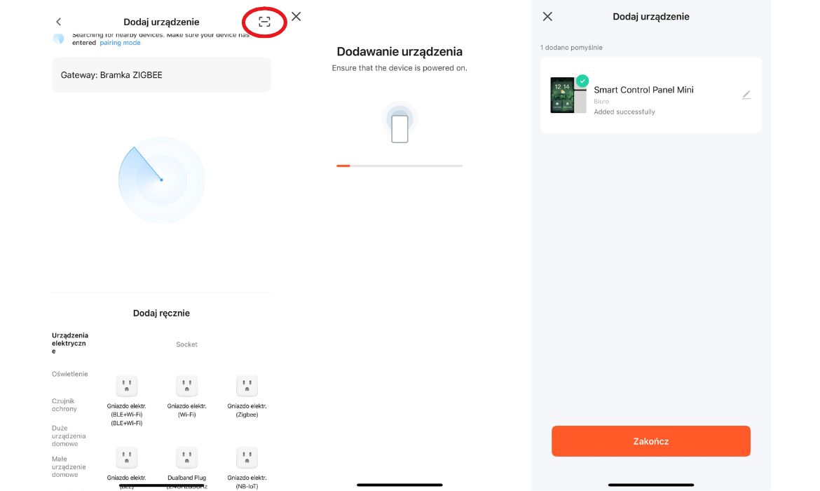 Urządzenie automatycznie rozpocznie dodawanie do aplikacji.