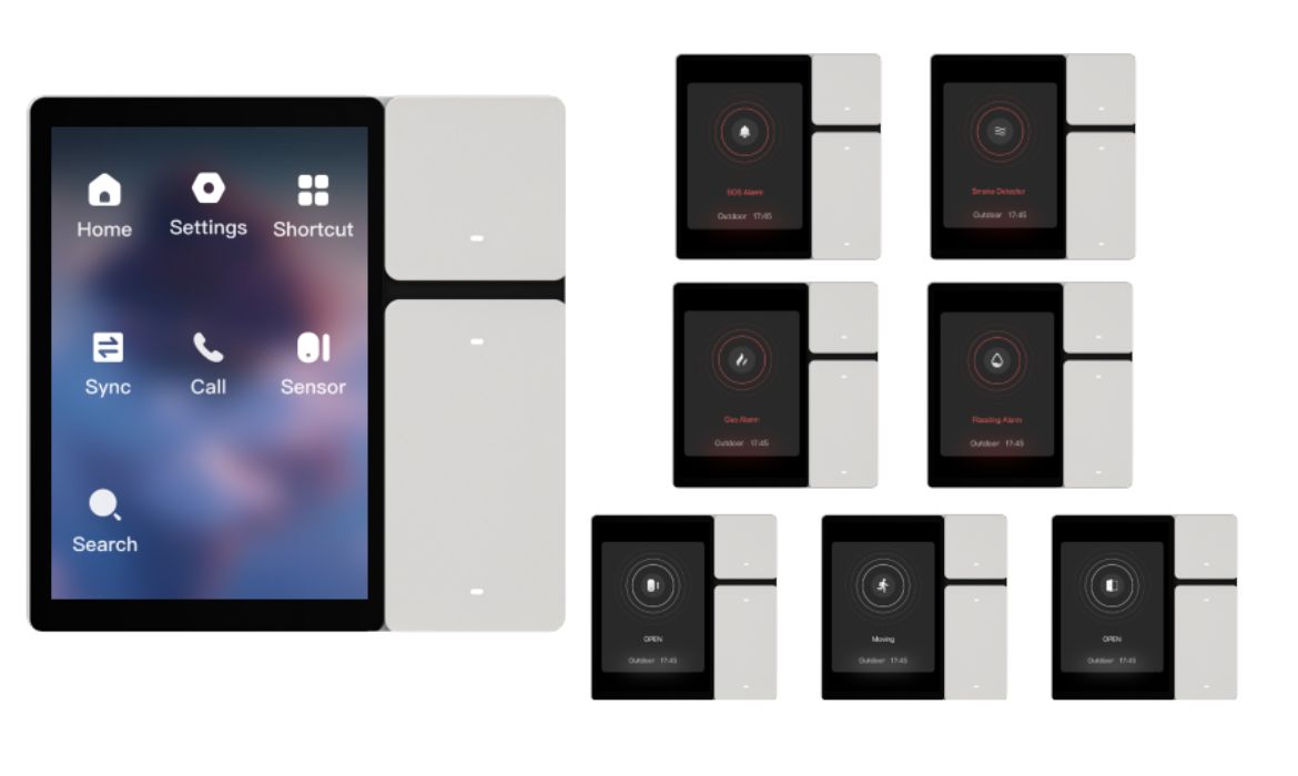 Panel Sone Smart One współpracuje z czujnikami Tuya/Smart Life, wyświetlając ich stan w czasie rzeczywistym na ekranie. Dzięki temu od razu zobaczysz, jeśli w domu zostanie wykryty ruch, otwarte drzwi lub okno, czy też zadziała czujnik dymu, gazu lub zalania.