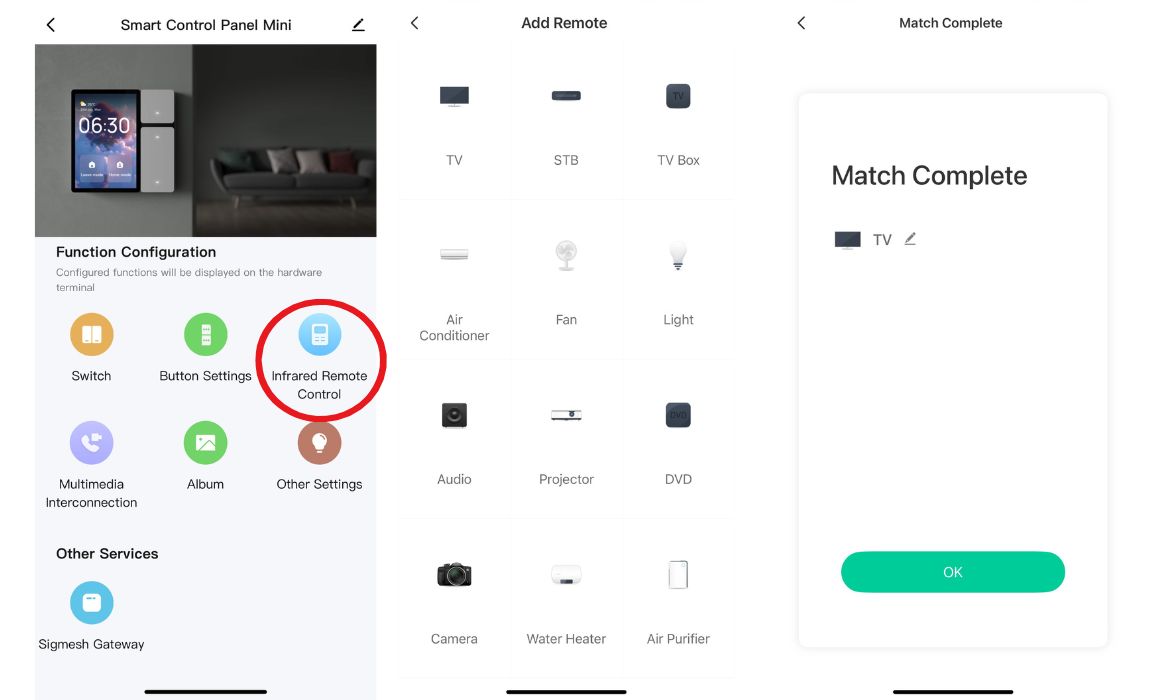Panel dotykowy ma wbudowany nadajnik podczerwieni (IR), dzięki czemu może zastąpić tradycyjne piloty. Obsługuje aż 12 kategorii urządzeń, w tym m.in. telewizory, klimatyzatory, projektory, sprzęt audio czy wentylatory. Po dodaniu urządzenia w aplikacji Tuya/Smart Life panel automatycznie synchronizuje ustawienia i pozwala sterować nim bezpośrednio z ekranu dotykowego.