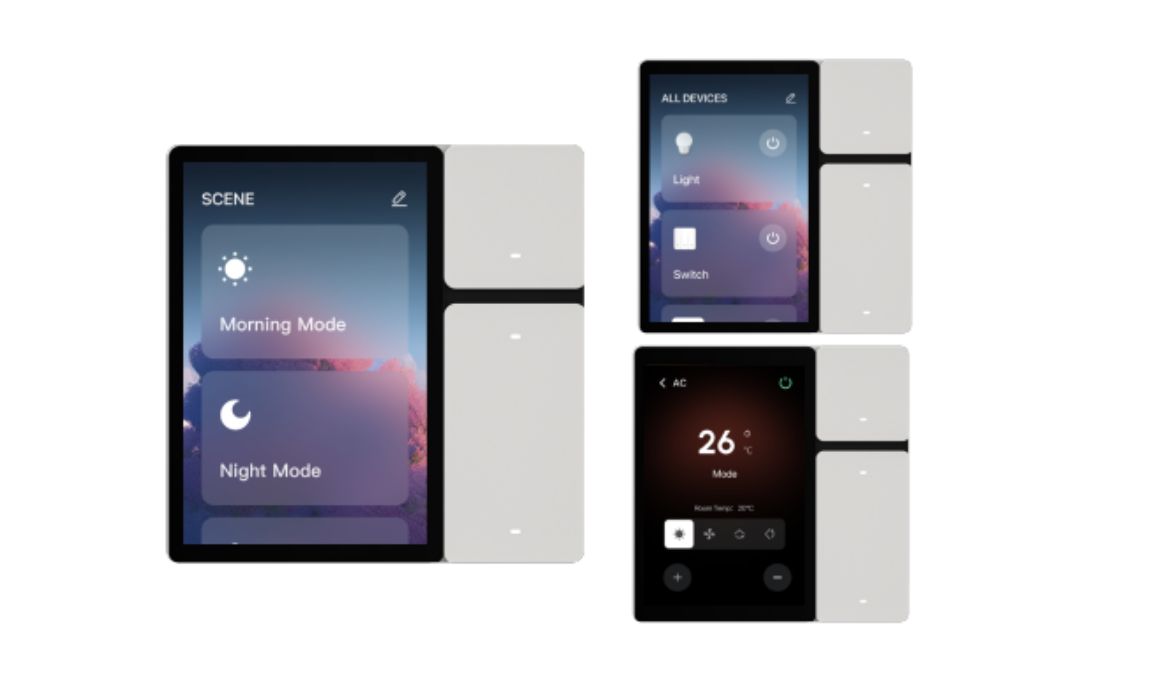 Dzięki zintegrowanej komunikacji panel pozwala nie tylko włączać światło, ale też sterować kamerami, odtwarzać sceny automatyzacji, kontrolować czujniki bezpieczeństwa (dym, gaz, zalanie, ruch) czy nawet zastąpić piloty IR do telewizora, klimatyzatora czy sprzętu audio. To wielofunkcyjne centrum dowodzenia Twoim domem – praktyczne, eleganckie i zawsze pod ręką.