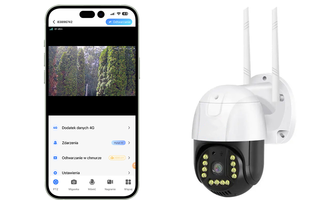 Dzięki połączeniu LTE urządzenie działa w dowolnym miejscu z zasięgiem sieci komórkowej – idealnie sprawdzi się na działce, placu budowy, w domku letniskowym, na parkingu czy w gospodarstwie rolnym. Połączenie jest stabilne, a przesyłany obraz zachowuje wysoką jakość.