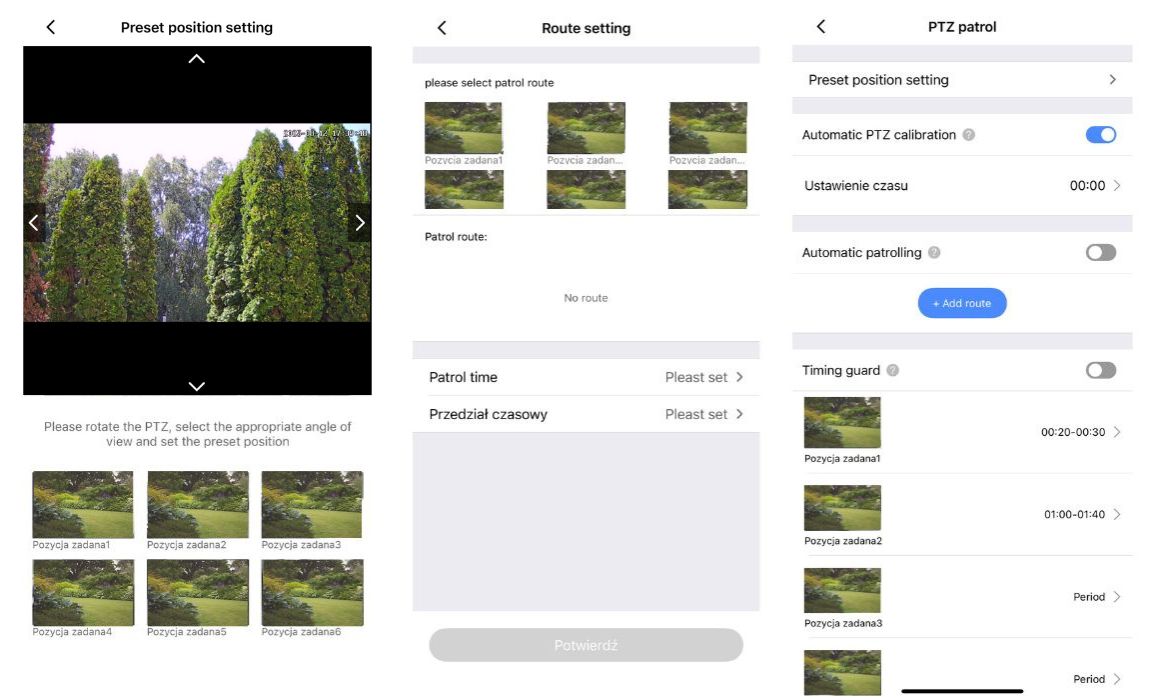 - Automatyczny patrol PTZ – zaprogramowane trasy i harmonogram obrotów.