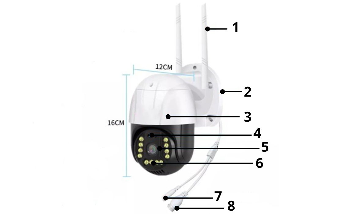Kamera 4G LTE V380 Pro została zaprojektowana tak, aby zapewnić maksymalną funkcjonalność przy zachowaniu kompaktowych wymiarów i solidnej obudowy odpornej na warunki atmosferyczne (IP66).