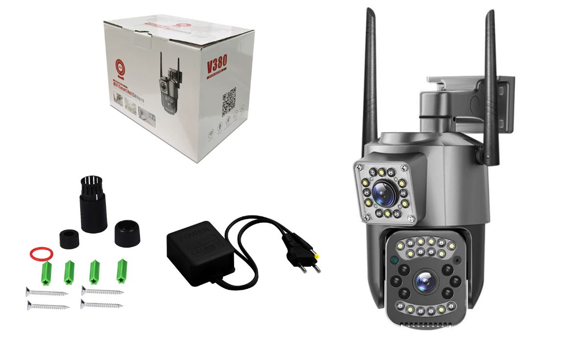 Podwójna kamera zewnętrzna 4G LTE PTZ o rozdzielczości 2MP + 2MP, wyposażona w górny obiektyw stały oraz dolny obrotowy, zapewnia niezawodny monitoring przez całą dobę. Obudowa odporna na warunki atmosferyczne (IP66), nagrywanie w dzień i w nocy (IR + LED) oraz pełna kontrola w aplikacji V380 Pro sprawiają, że to idealne rozwiązanie dla domu, działki czy firmy.