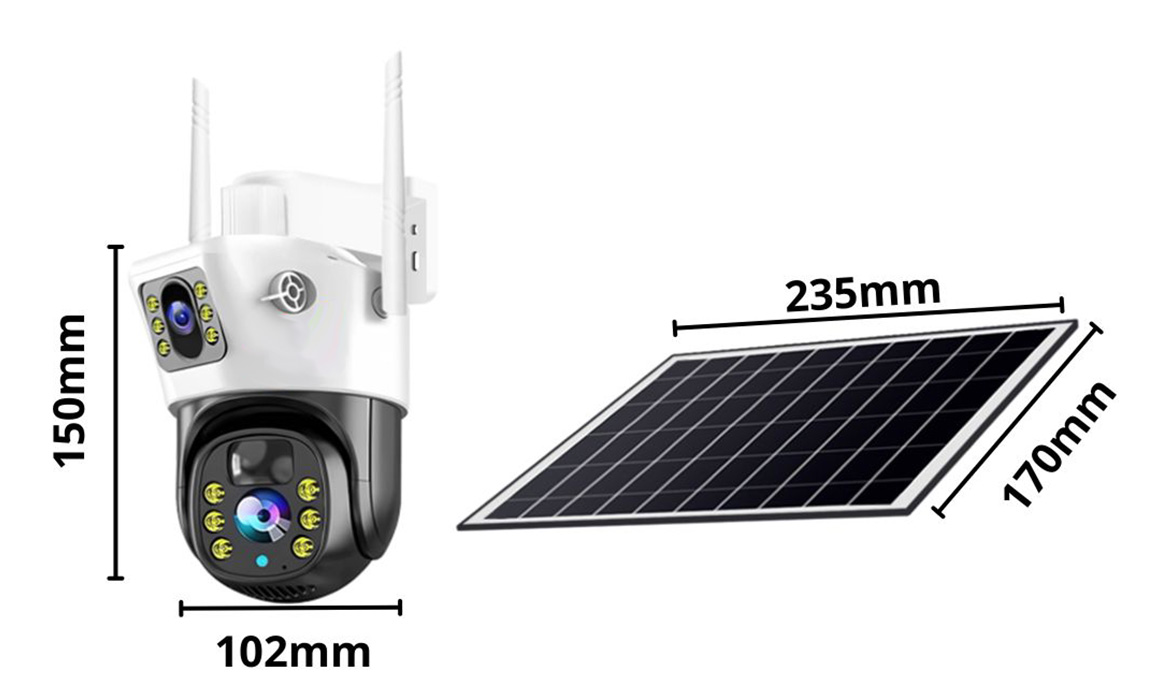 Nie potrzebuje kabli ani Wi-Fi – wystarczy włożyć kartę nano SIM 4G LTE, a obraz i dźwięk będą przesyłane prosto na Twój telefon. Zasilanie zapewnia wydajny panel solarny 10W (w zestawie) z przewodem o długości 120 cm, który należy podłączyć do kamery. Dzięki temu panel można zamontować w nasłonecznionym miejscu, a sama kamera może znajdować się tam, gdzie najlepiej obejmuje teren monitoringu. Wbudowany akumulator 8000 mAh pozwala na całoroczną pracę bez podłączania do prądu.
