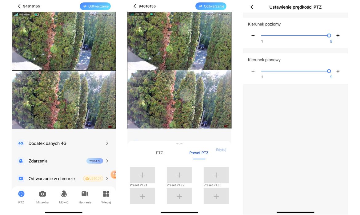 - Regulacja prędkości PTZ: tak – osobno dla poziomu i pionu
