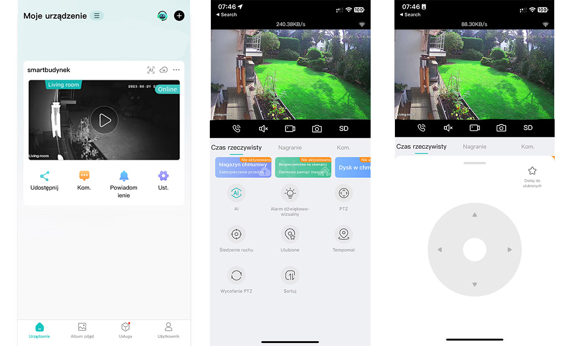 - Powiadomienia push na telefon – otrzymasz informację o wykryciu ruchu