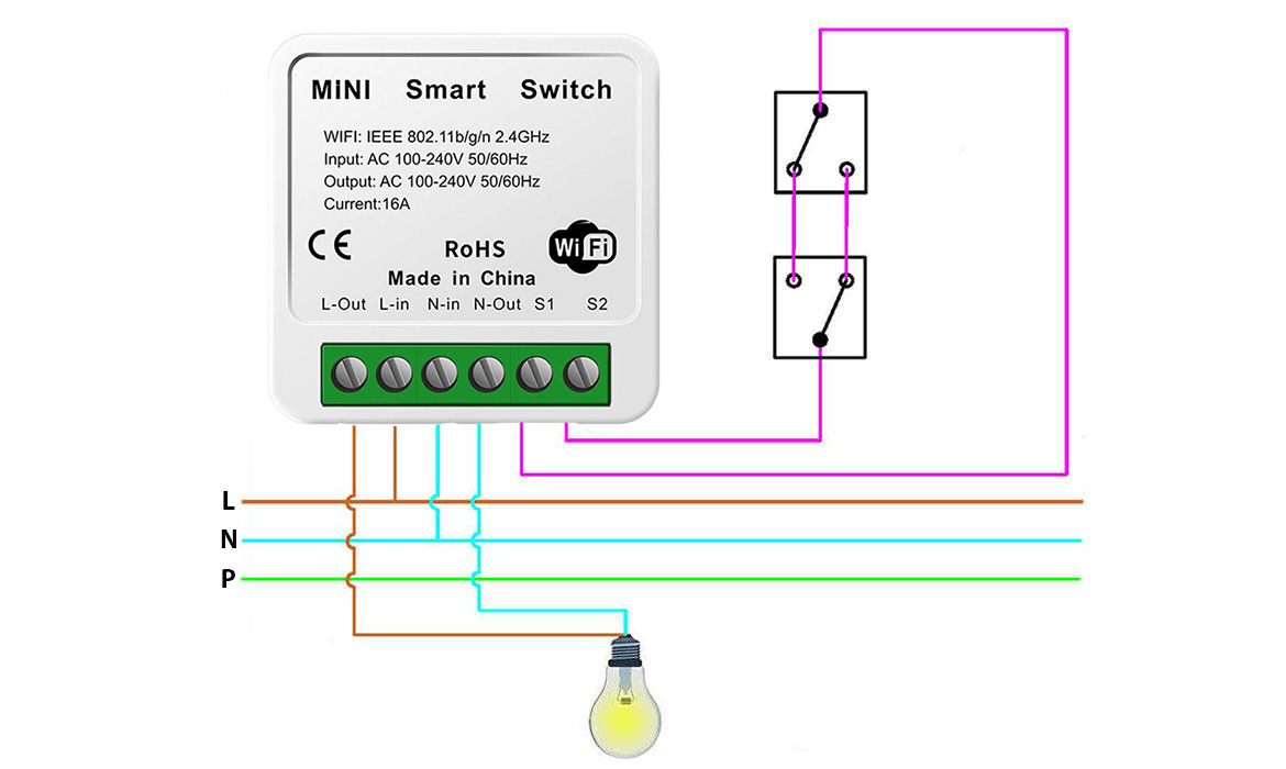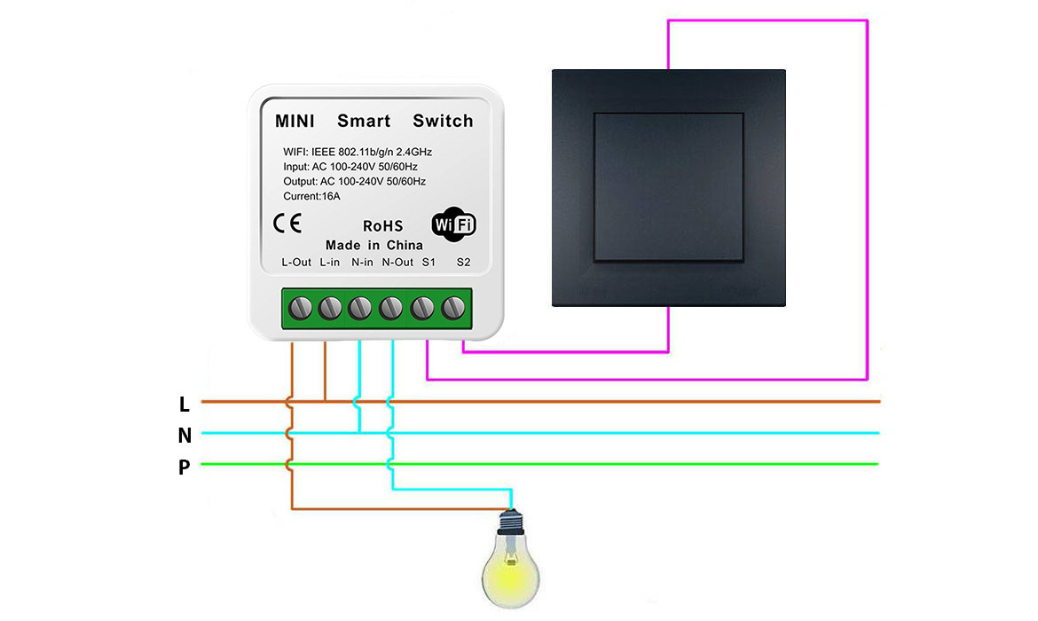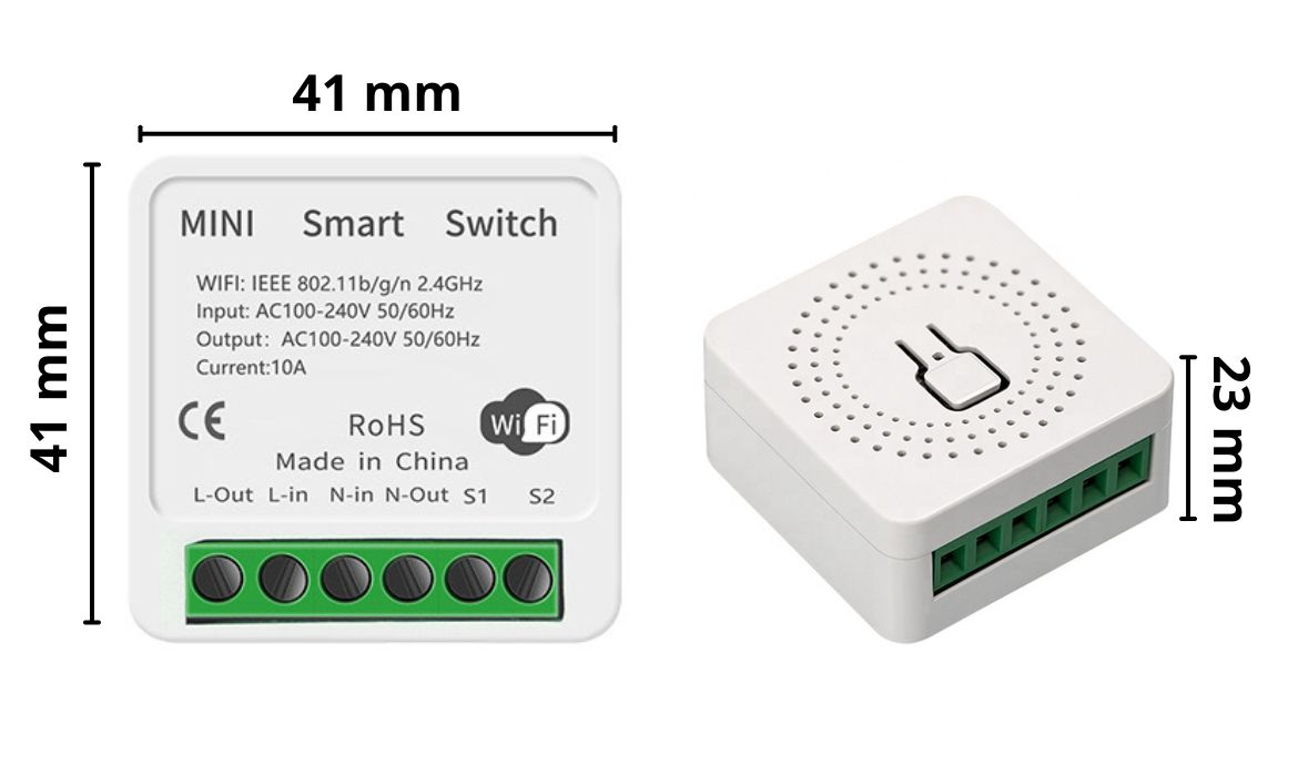 Kompaktowy rozmiar (41 x 41 x 23 mm) umożliwia łatwy montaż w standardowej puszce podtynkowej o średnicy 60 mm. To doskonałe rozwiązanie zarówno do nowych instalacji, jak i modernizacji istniejących – bez konieczności przerabiania układu elektrycznego. Dzięki obsłudze klasycznych włączników i możliwości ustawienia ich trybu pracy w aplikacji, integracja z dotychczasową instalacją jest szybka i prosta.