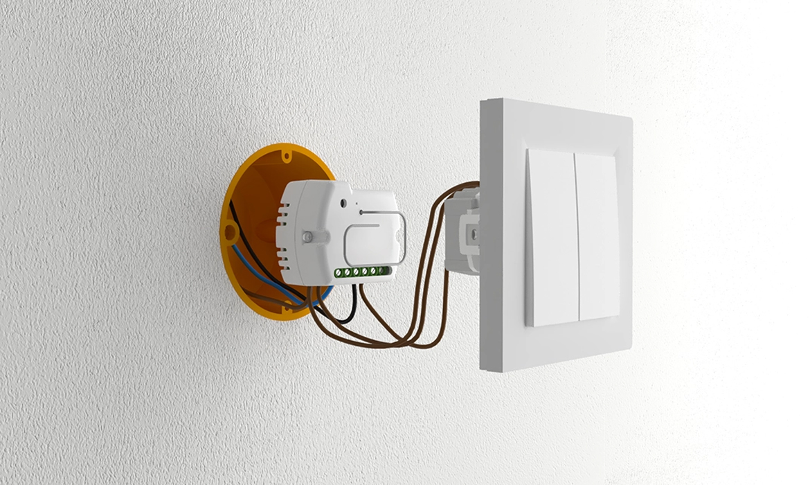 Montaż przebiega szybko i bez komplikacji, co ułatwia integrację z aktualną instalacją. Urządzenie można łatwo zamontować w standardowej puszce elektrycznej o średnicy 60 mm. Dzięki niewielkim wymiarom moduł jest dyskretny i nie zaburza wyglądu pomieszczenia, gdyż po instalacji pozostaje całkowicie ukryty.