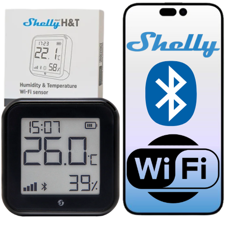 - Shelly H&T Gen3 to inteligentny czujnik temperatury i wilgotności do aplikacji Shelly. Działa przez Wi-Fi bez bramki, posiada czytelny wyświetlacz i może być zasilany bateryjnie lub przez USB-C. Idealny do monitorowania warunków w domu.