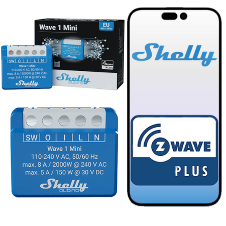 Shelly Wave 1 Mini – przekaźnik Z-Wave 8A do puszki, styk bezpotencjałowy
