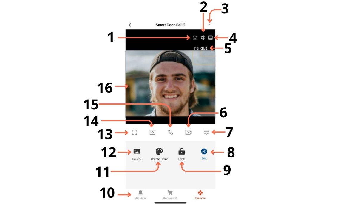 Ten zakres pozwala uchwycić twarz większości dorosłych i zapewnia wygodny dostęp do przycisku dzwonka.